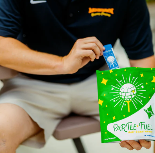 Introducing Par-Tee Fuel, the ultimate golf supplement made to elevate your game. Our proprietary blend harnesses the power of Lion's Mane Mushroom, L-Theanine, Cordyceps Mushrooms, and Green Tea Extract to give you natural energy, focus, and stamina without the jitters and crash. How's it taste? Like a hole-in-one for your senses.